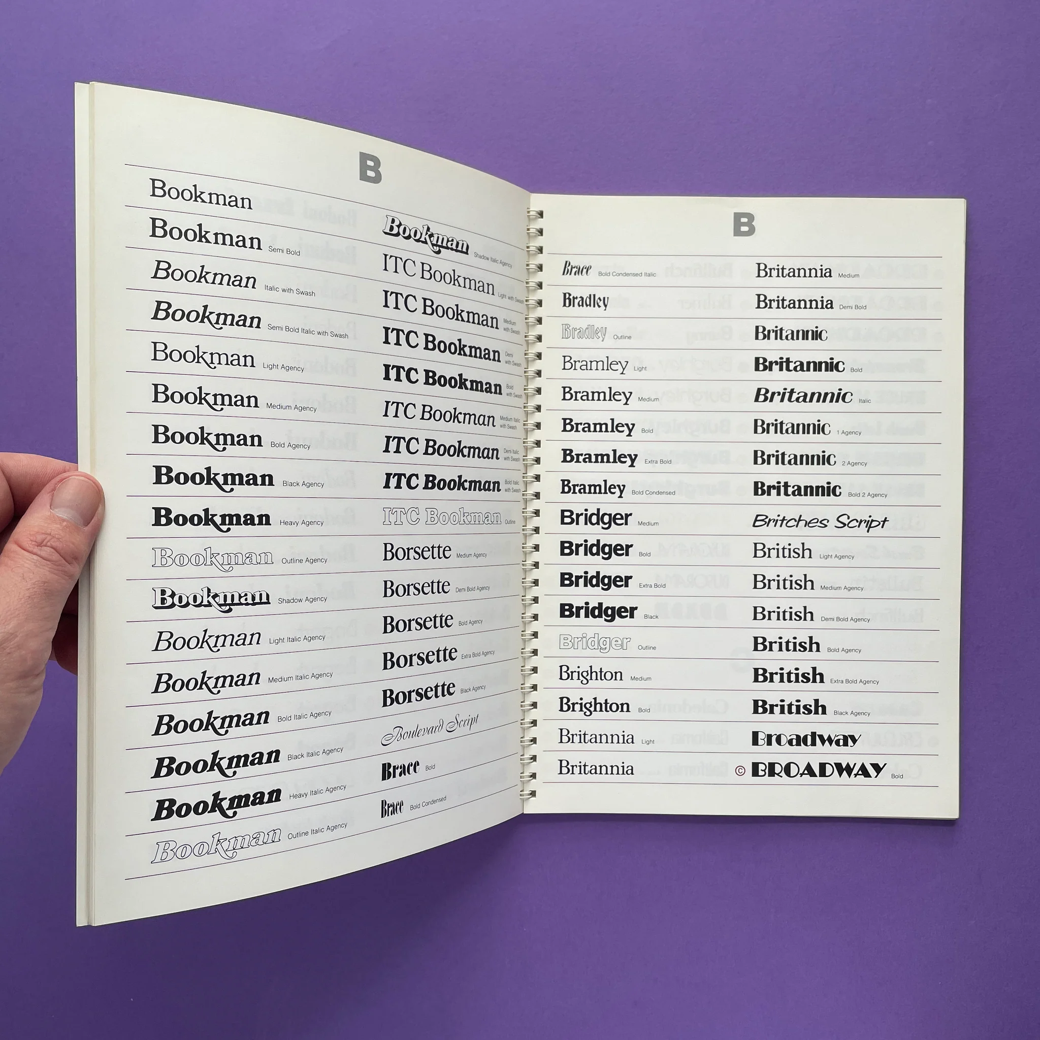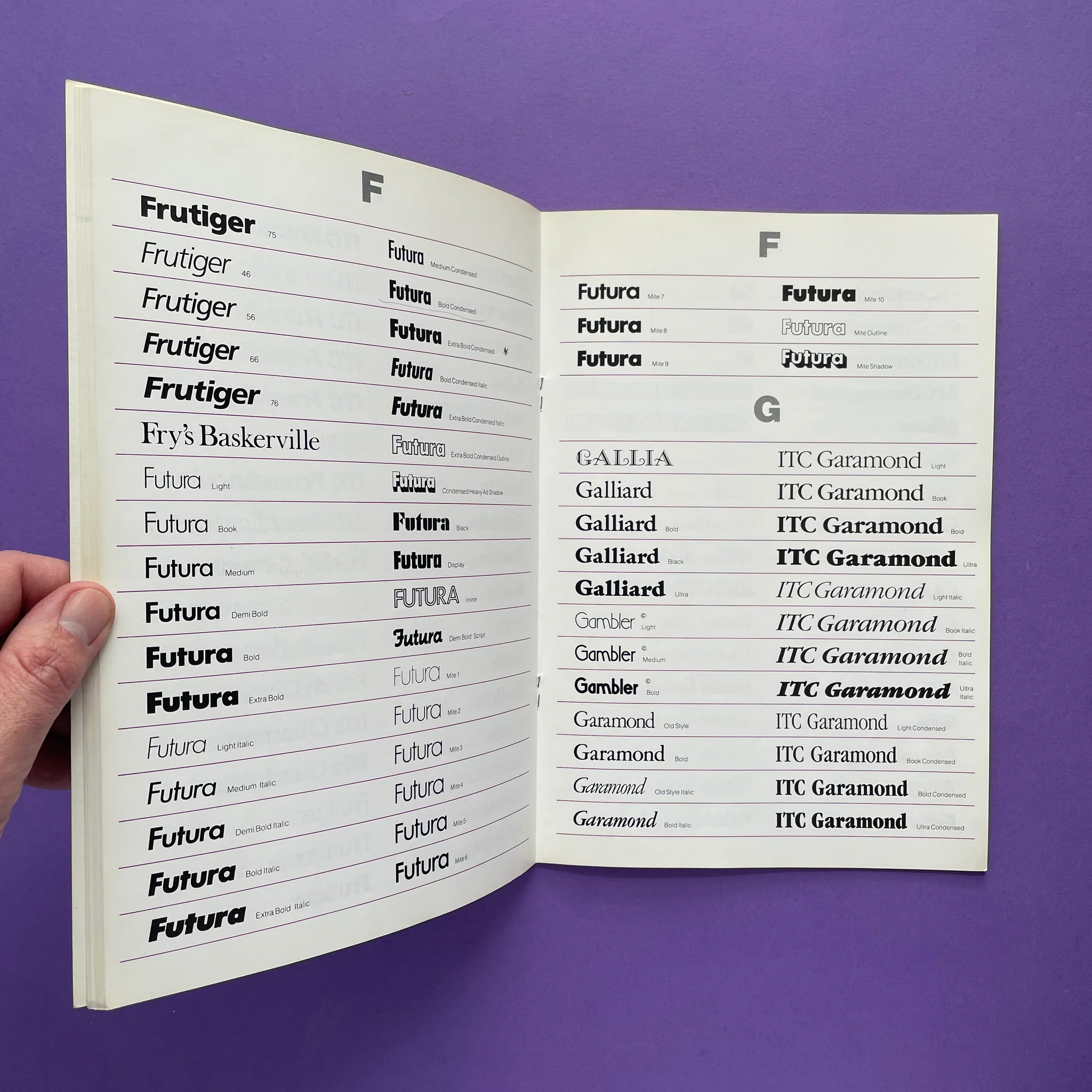 The Type Book | Compugraphic | 1985 | CompugraphicHaasFonderie OliveSimonciniNeufvilleTypsettraType SpectraLetrasetOtherITC | Photo | US | Wilmington | Glyphs | Binder | Jul 19, 2025 10:56 PM | ||||||||